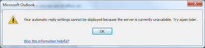 Your automatic reply settings cannot be displayed because the server is currently unavailable. Try again later.