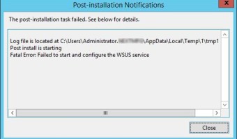 After adding the Windows Server Update Service role, WSUS start the post installation task to configure its settings. Sometimes this post installation task getting failed with below error. "Fatal Error: Failed to start and configure the WSUS service" With the error its output a … [Read more...] about WSUS Post Installation Failed