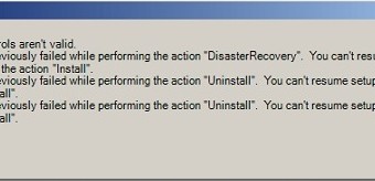 Error 1 Some controls aren't valid. - Setup previously failed while performing the action "DisasterRecovery". You can't resume setup by performing the action "install". - Setup previously failed while performing the action "Uninstall". You can't resume setup by performing … [Read more...] about Exchange 2010 Setup Error – The following error was generated when “$error.Clear();